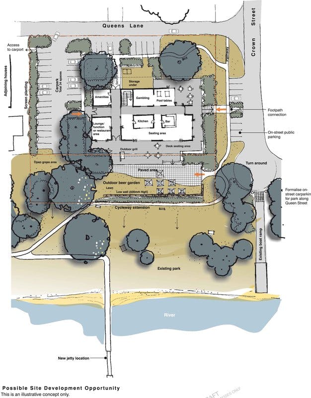 The owners of Sedgers Reef Hotel at Iluka have formally offered to purchase part of the Queen Street Road reserve immediately in front of the hotel for $750,000. A concept plan has been prepared by the owners and is on public exhibition for four weeks.